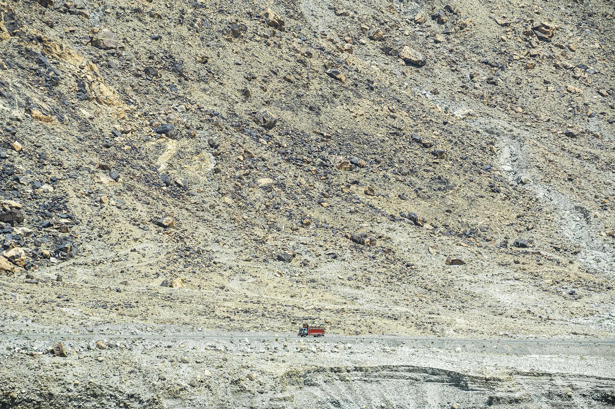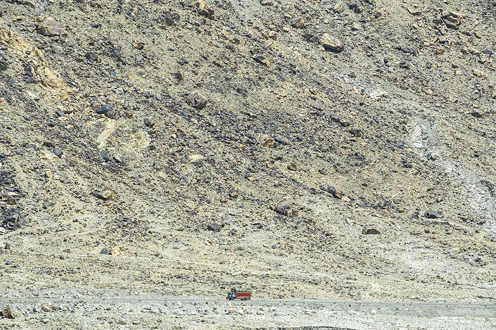 At first sight, in the blinding brilliance of the sun, the land seems stripped bare—sheer walls of rock rising toward distant peaks crowned with snow. Yet at the edges, life clings on. Green valleys unfurl like hidden secrets, while fragile terraces carve their way into cliffs and ravines, holding fast against the silence of stone.
